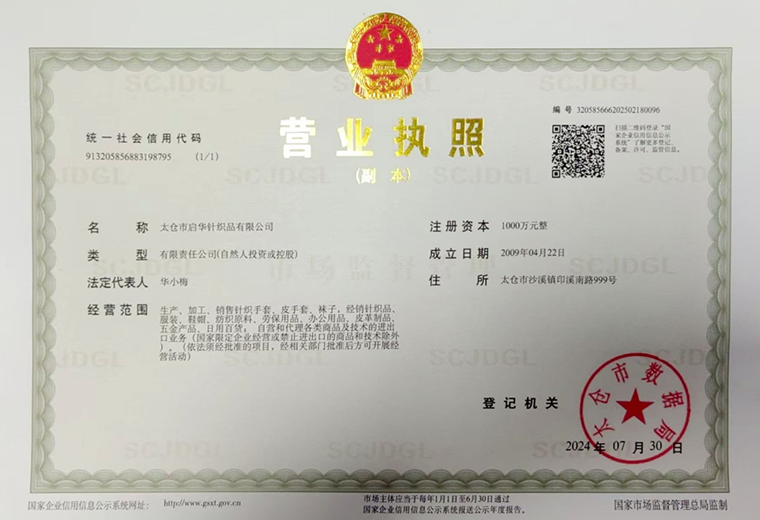 太倉市啟華針織品有限公司成立于2008年,位于江蘇太倉,是一家專業生產銷售防護用品的實體型生產企業。